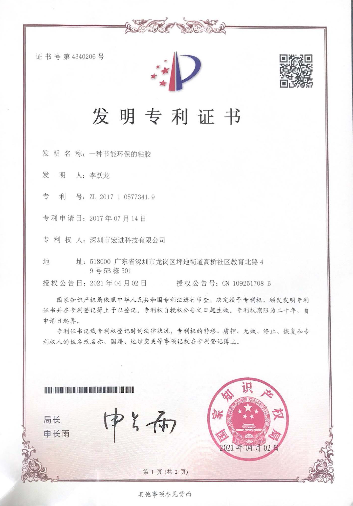 • 發明專利證書
